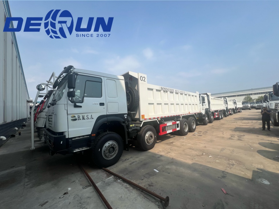आयव्हरी कोस्टसाठी नुकताच पूर्ण झालेल्या आणि शिपमेंटच्या प्रतीक्षेत असलेल्या सिनोट्रुक हॉवो 8 एक्स 4 डंप ट्रकची एक तुकडी. ते ग्राहकांसह त्यांचे वाहतूक प्रवास सुरू करणार आहेत.