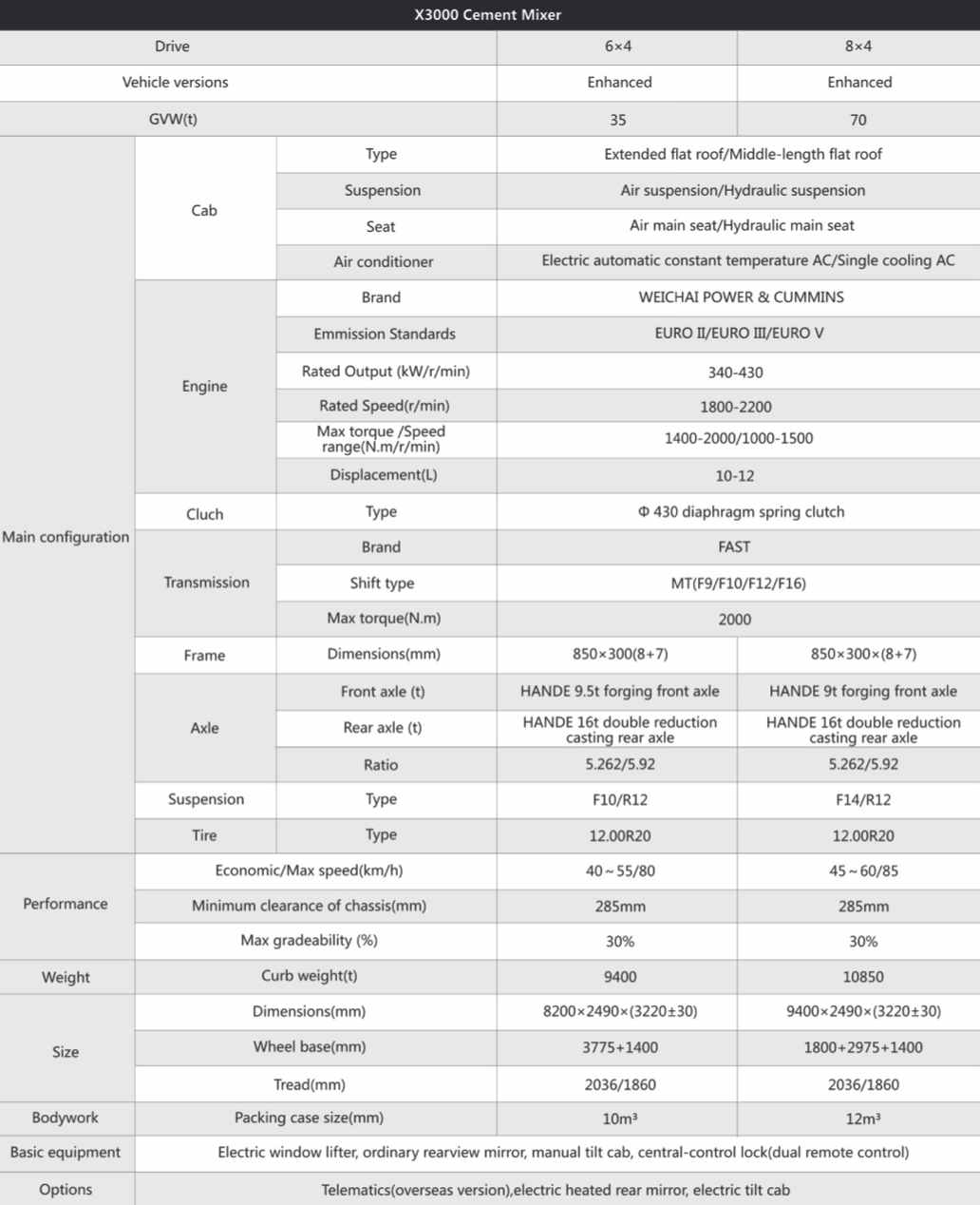 शॅकमन एक्स 3000 मिक्सर ट्रक पर्यावरण संरक्षण आणि कार्यक्षमतेचे संतुलन साधून राष्ट्रीय सहावा उत्सर्जन मानकांचे पालन करते. आधुनिक बांधकाम प्रकल्पांमध्ये ठोस वाहतुकीसाठी हे एक अपरिहार्य उपाय आहे.