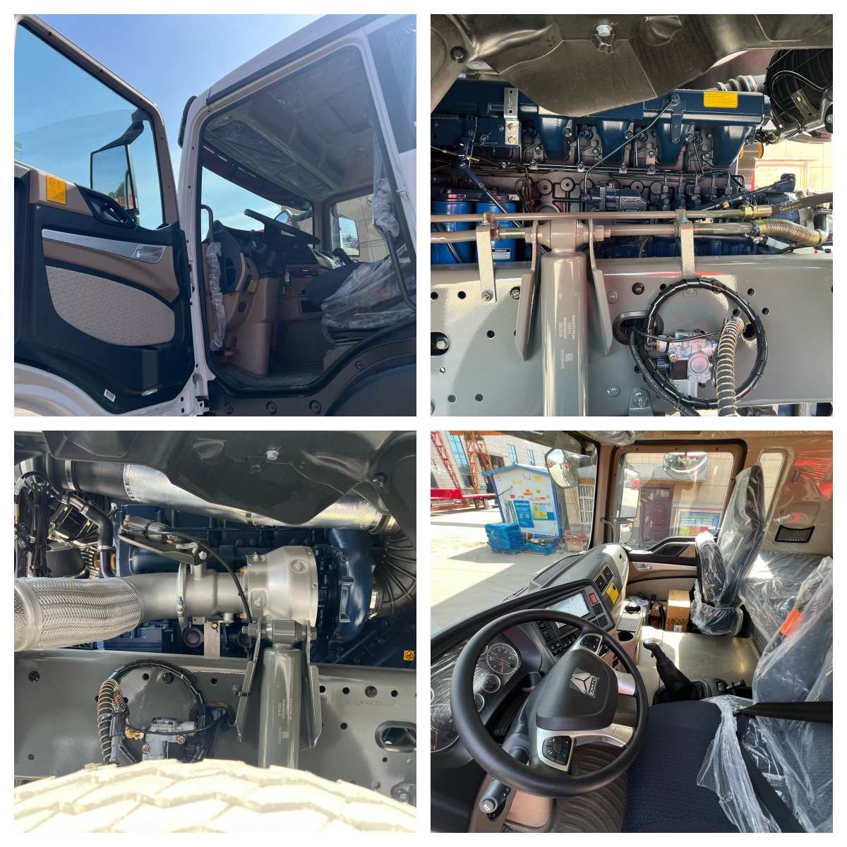 सिनोट्रुक सिट्रॅक 4 एक्स 2 हेड ट्रॅक्टर ट्रक चीन नॅशनल हेवी ड्यूटी ट्रक (सीएनएचटीसी) एमसी मालिका इंजिनद्वारे समर्थित आहे, 400 किंवा 480 एचपी आवृत्तीमध्ये उपलब्ध आहे आणि झेडएफ ट्रान्समिशनसह एकत्रित आहे, जे उच्च ट्रान्समिशन कार्यक्षमता आणि गुळगुळीत गियर शिफ्टिंगद्वारे वैशिष्ट्यीकृत आहे. ड्रायव्हर आणि प्रवाशांना आरामदायक काम करण्यासाठी एक आरामदायक वातावरण प्रदान करण्यासाठी टॅक्सी एर्गोनॉमिकली डिझाइन केलेली आहे आणि इलेक्ट्रिक सनरूफ, एअरबॅग सीट्स, स्वयंचलित वातानुकूलन आणि व्हिज्युअल इन्स्ट्रुमेंटेशन सारख्या अनेक आरामदायक वैशिष्ट्यांसह सुसज्ज आहे. याव्यतिरिक्त, सिनोट्रुक सिट्रॅक 4 एक्स 2 हेड ट्रॅक्टर ट्रक ड्रायव्हिंगची सुरक्षा वाढविण्यासाठी प्रगत बुद्धिमान ड्रायव्हर सहाय्य प्रणालीसह सुसज्ज आहे.